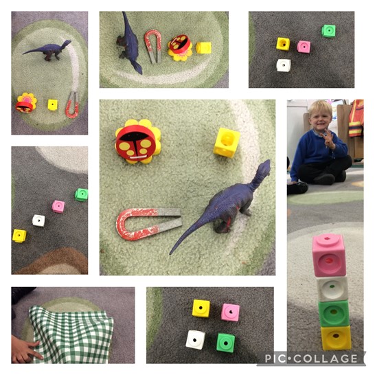 Other children liked the maths provocations in the classroom. We had matching cards to play with and Numicon shapes and pegs to explore. The children were introduced to the Numberblocks.