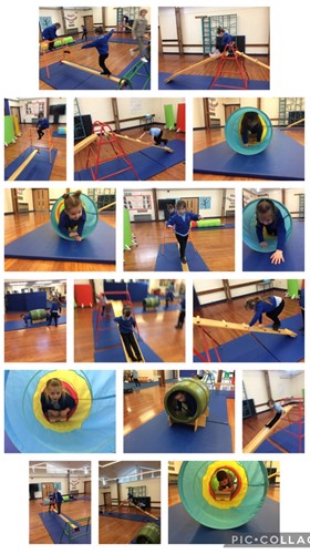 They worked together as a team to safely manoeuvre and move the equipment, showing awareness of space and listening carefully to guidance. With adult support, they led decisions about where each mat and item should go. The children explored different ways to travel across the circuit, including sliding, walking and crawling, developing their coordination, confidence and teamwork.