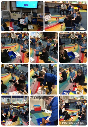 The children built houses from wood, fabric, and paper, then tested which ones kept Fred dry. This helped us understand the term waterproof. To finish, we went on a classroom scavenger hunt to find items that were hard, bendy, rough, or transparent.
