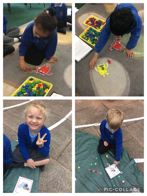 The children have been learning to subitise in maths this week. By subitising, we mean teaching the children to be able to visualise a number of objects instantly without counting them out one-by-one. There is more information here: Subitising | numeracy | early years - BBC Bitesize.