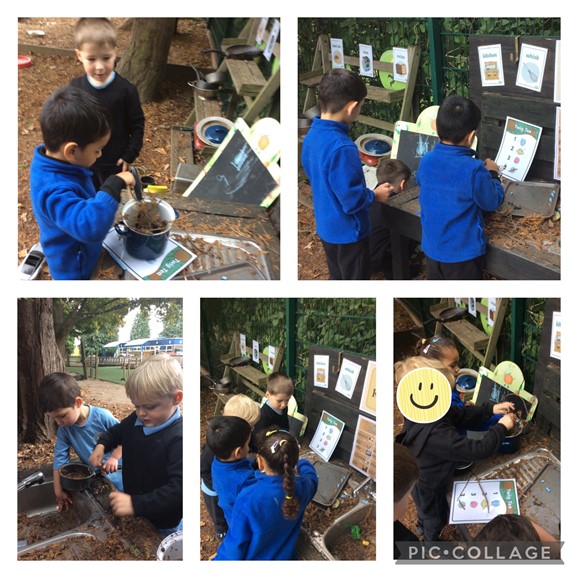 EYFS have been enjoying our fabulous outdoor area with the sand tray, the water tray and water tubes and the mud kitchen.
