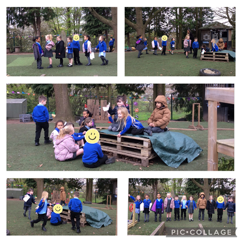 Our story in Drawing Club was 'Rosie's Walk'. The children recreated the story in the outdoor classroom.
