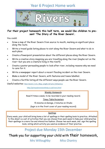 In addition to the weekly times tables and reading homework, children will be set a topic related project at the start of each half term. Children who choose to complete the project will have the opportunity to share this with the class.