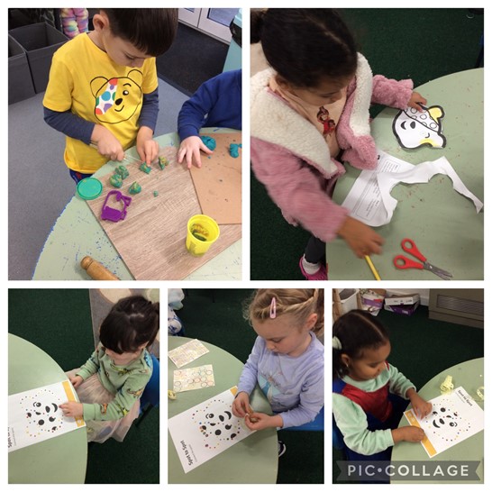 It was Children in Need on Friday and EYFS enjoyed a range of fine motor Pudsey activities, which including dot stickers, playdough and scissor skills.