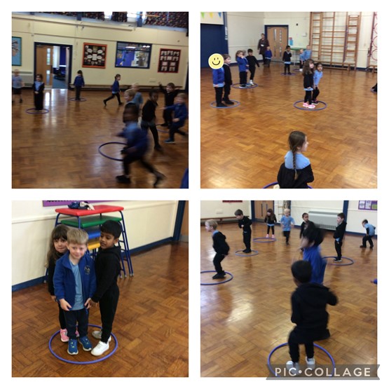 In PE, the children enjoyed playing a game where they got to practise using different ways of moving around the room. They had to hop, skip, jump and waddle to the 'islands' before they 'froze into a snowman'.