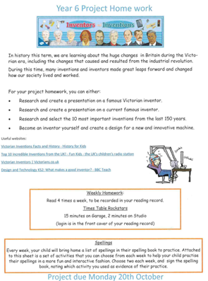 In addition to the weekly times tables and reading homework, children will be set a topic related project at the start of each half term. Children who choose to complete the project will have the opportunity to share this with the class.