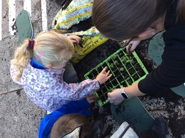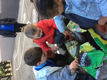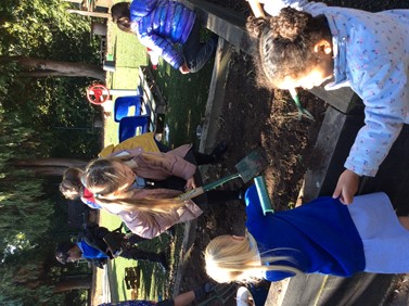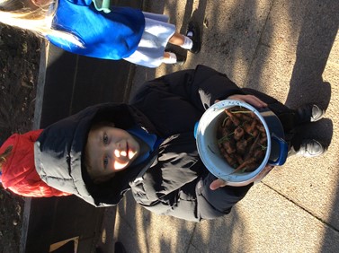 The children also got busy with some gardening and they enjoyed raking and digging the soil. The children managed to find lots of worms and a HUGE toad, as well as the carrots that were planted in the summer by last year's EYFS classes! They helped to put compost into pots for some plug plants which we will plant outside next spring. The children enjoyed smelling the lavender and the range of garden herbs.