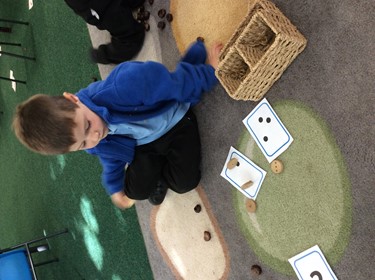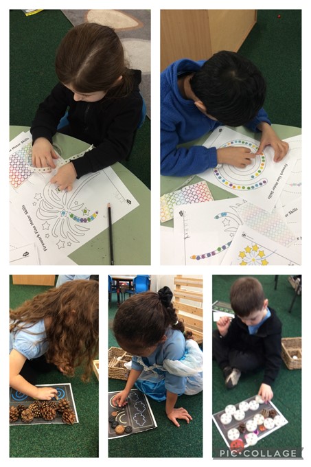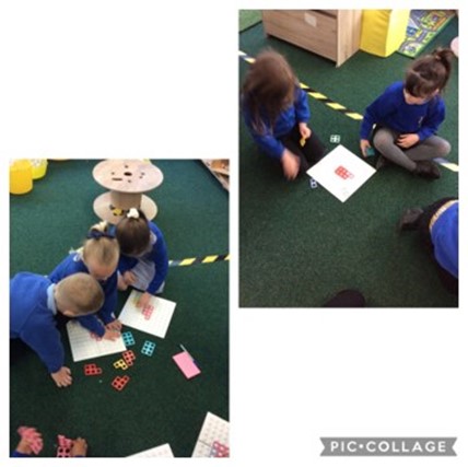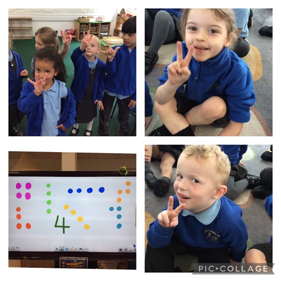 The children have been learning to subitise in maths this week. By subitising, we mean teaching the children to be able to visualise a number of objects instantly without counting them out one-by-one. There is more information here: Subitising | numeracy | early years - BBC Bitesize.