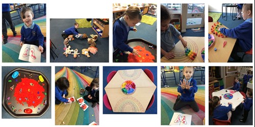 Whilst setting up our Rainbow Room activity the children started asking some questions about different colours.